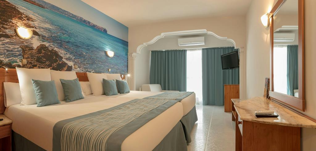 Zwembad onder dak van glas, Vlakbij het oude centrum, Strand op loopafstand, Aan het L'Aigüera-park, Buffetrestaurant met variatie, Meerdere barretjes & inclusief transfers.